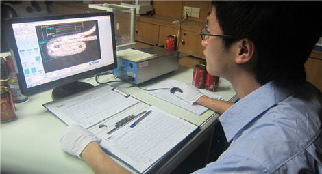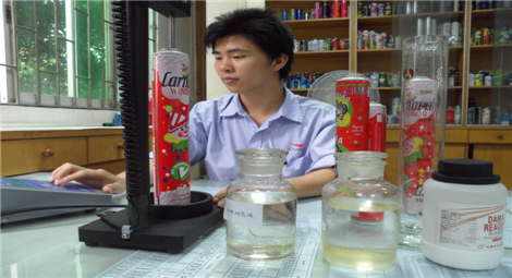 質檢員正在用罐二重卷封投影儀檢測卷封質量
